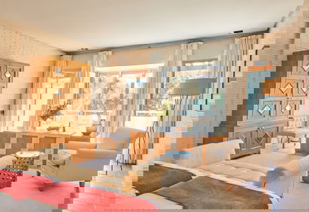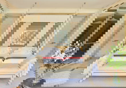 Our take on a New York loft, entering the suite you pass through a small dining spot that cleverly converts into a lounge area. The hydro massage bathtub is located in the solarium overlooking the golf course, and the large terrace features chaise lounges for relaxing seaside evenings.