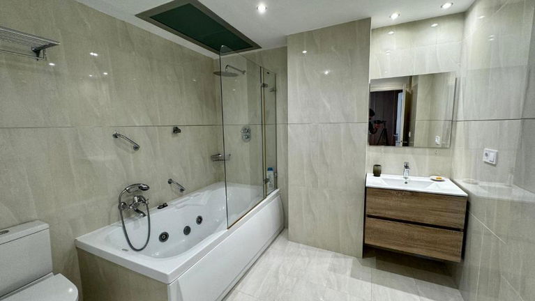 Luxurious accommodations decorated in light tones invite you to relax in comfort and elegance. Suite features spacious marble bathroom with tub and separate standing shower.